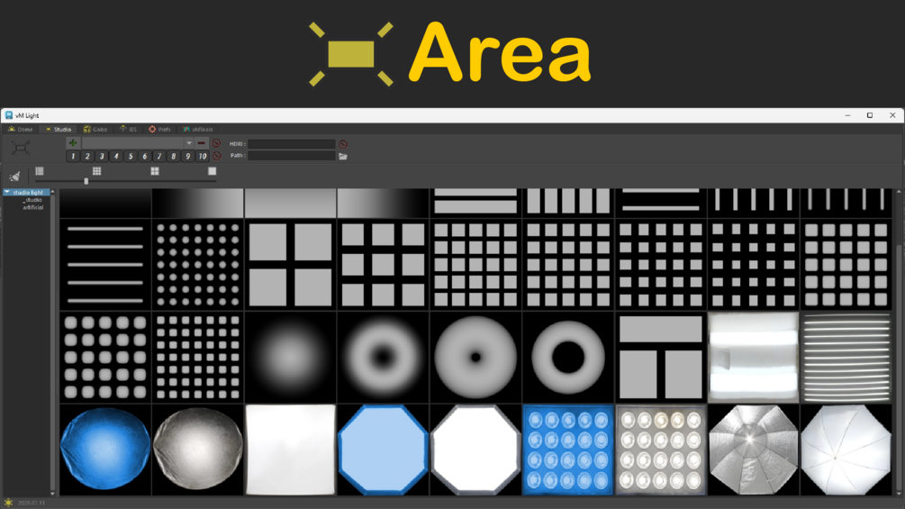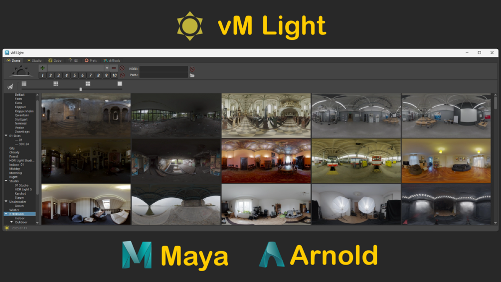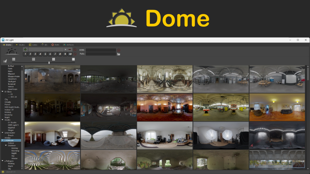 Included - 16 Demo lat long HDRI / 33 Studio lights / 2400+ Gobo Images / 283 IES Profiles.