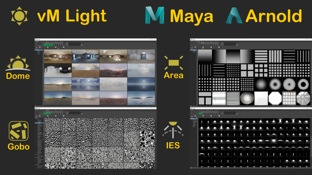 vM Light it's a script for Maya which allows to work with different types of light.